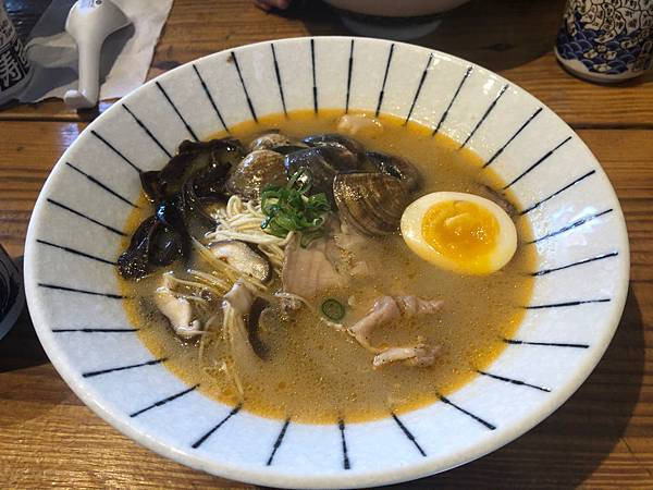 整體而言,麵量可(同行女生吃得蠻飽的,男生可能剛剛好),還附三顆大顆的蛤仔,湯頭佳(喝得出濃濃的海味),但可能跟店員說的一樣,濃厚的湯頭並沒有達到我的預期,覺得可以在重一點