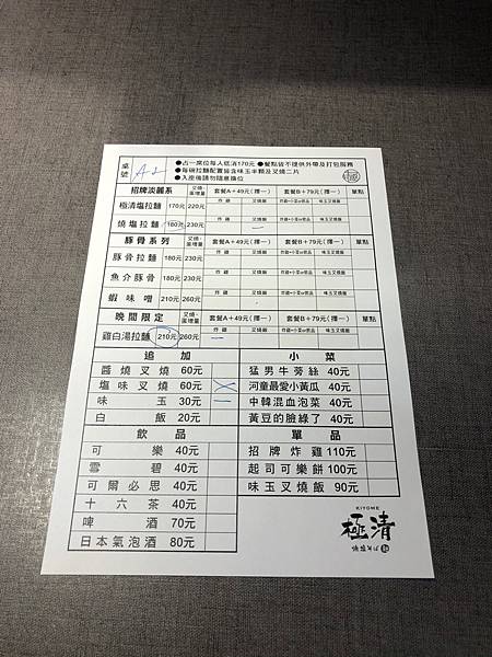 燒鹽拉麵($180)本日最推的的一碗拉麵